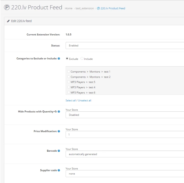 This OpenCart data feed module allows you to feed all your products to the Latvian marketplace 220.lv and Lithuanian marketplace pigu.lt and Estonian marketplace kaup24.ee.