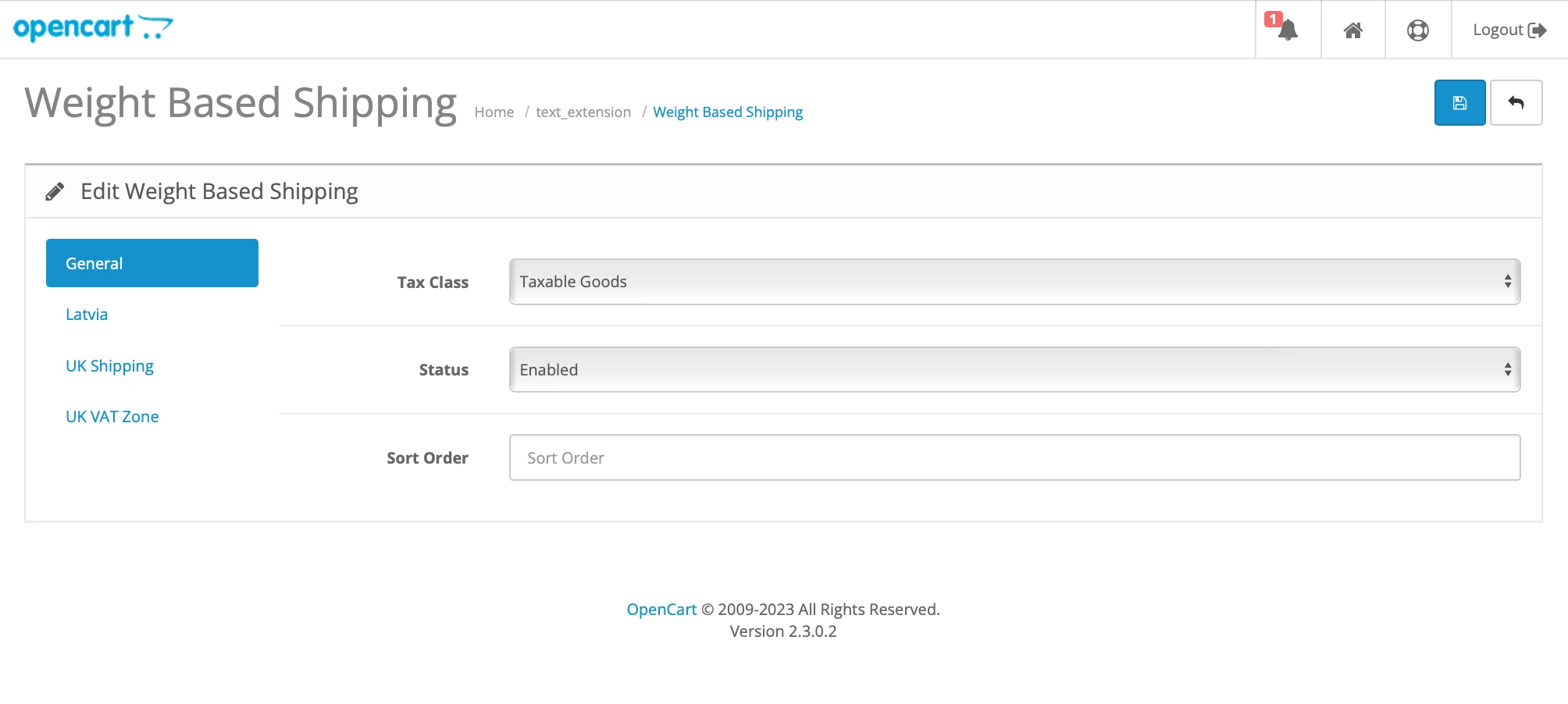 Free Shipping Limit Extension Settings General Screenshot