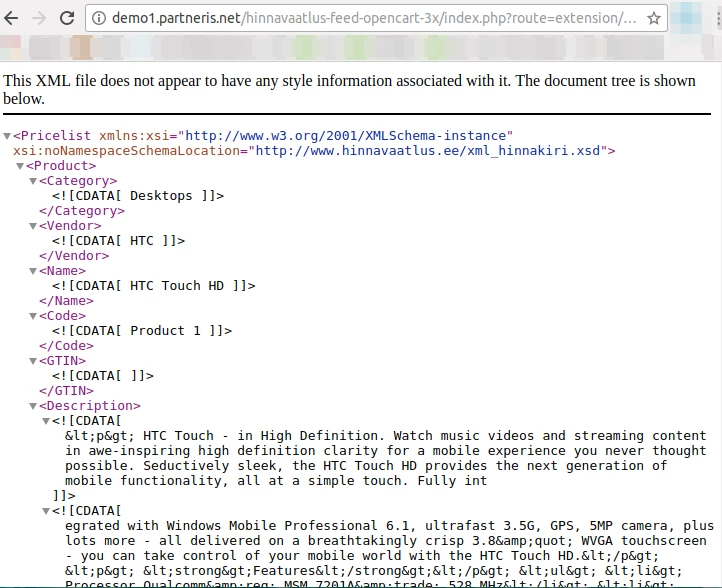 Hinnavaatlus.ee Data Feed Example Screenshot