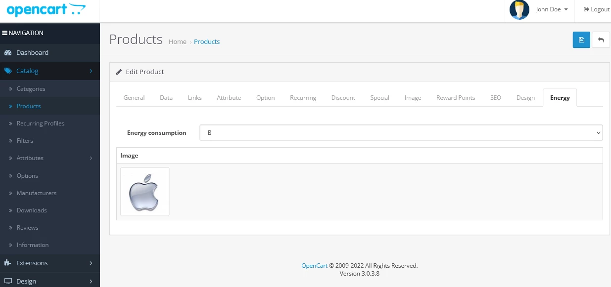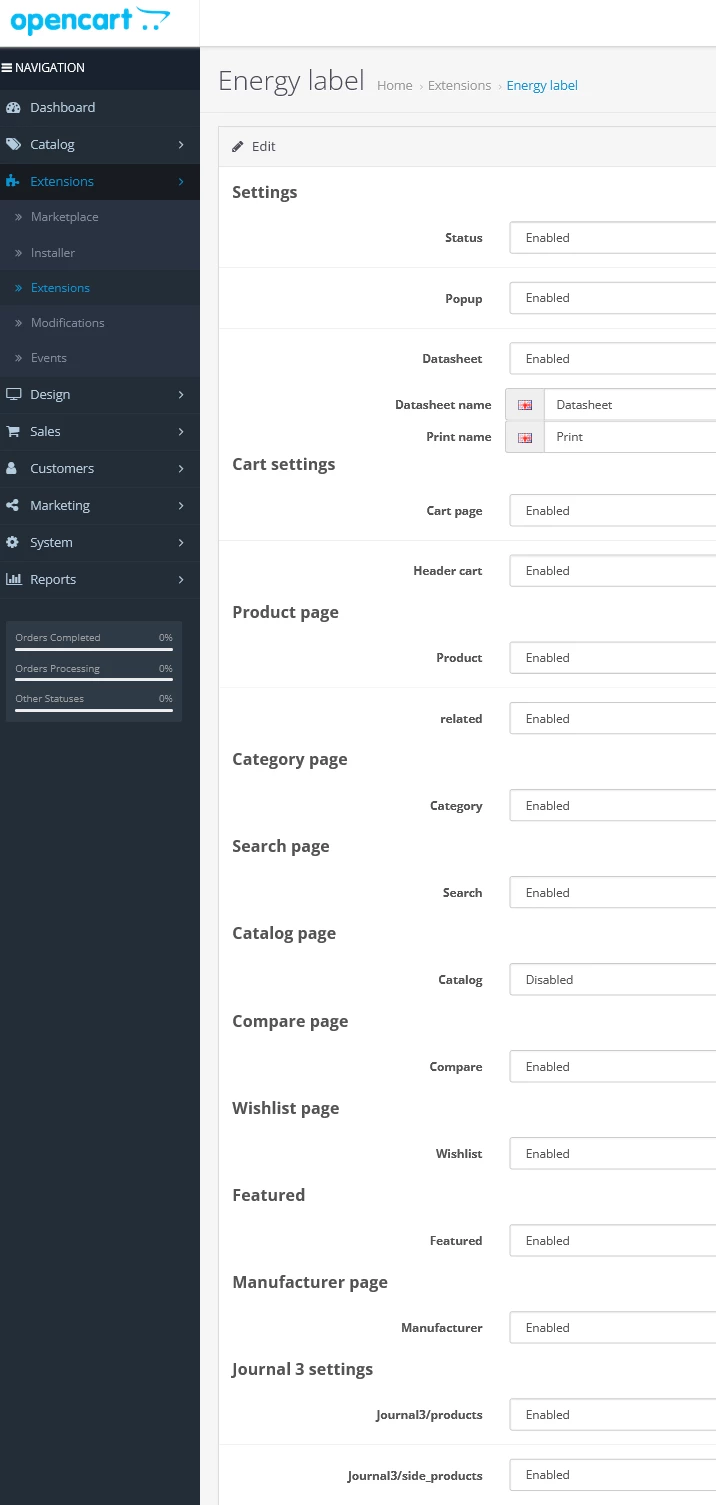 Модуль энергомаркировки для OpenCart 3.x