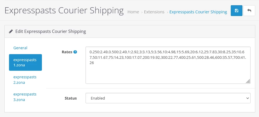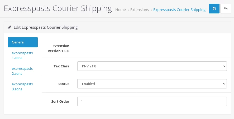 1. Настройки расширения доставки Express Pasts – вкладка Общие
