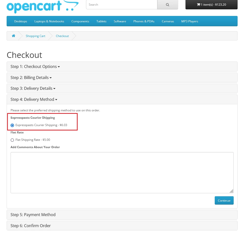 3. Оформление заказа с выбором доставки Express Pasts